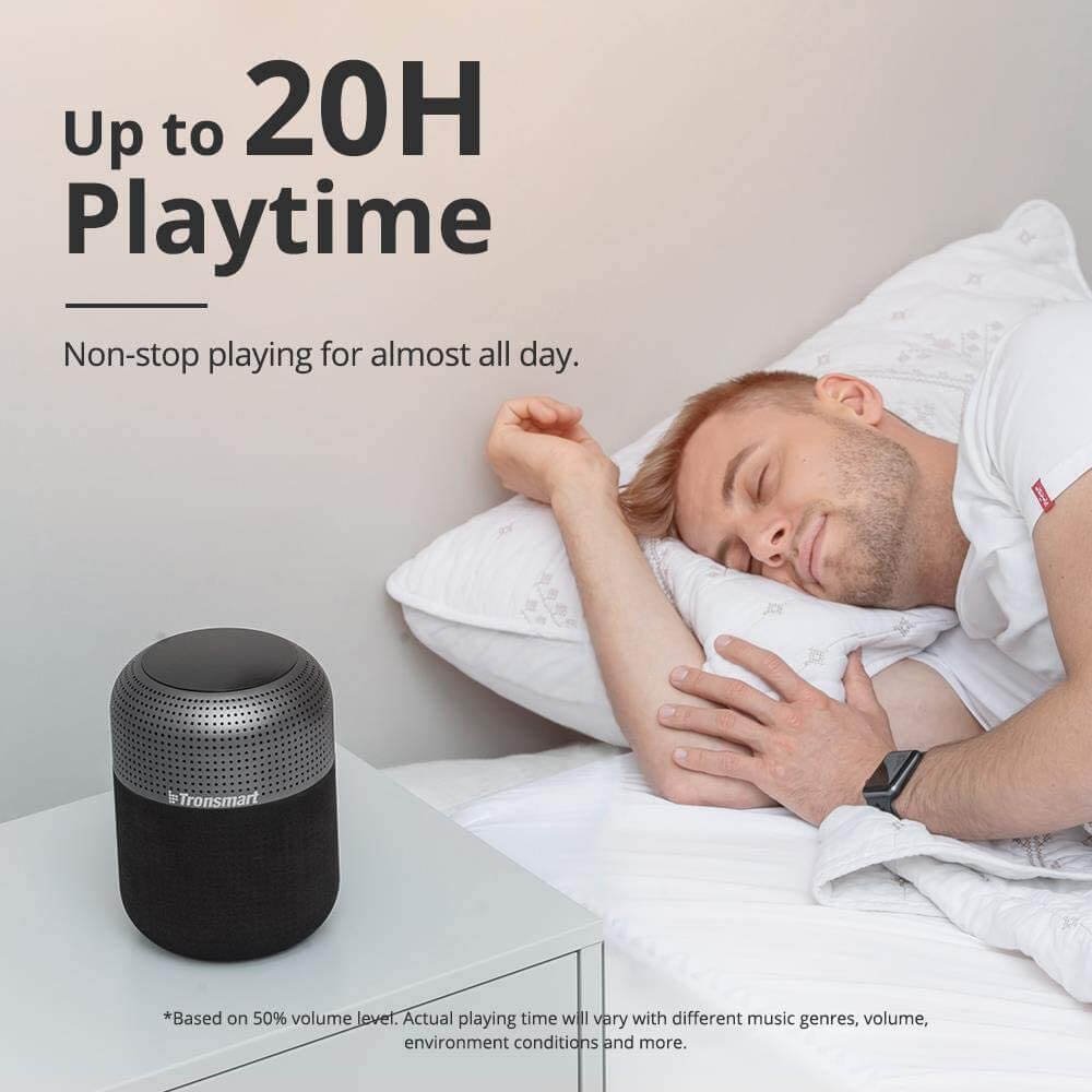 Este Tronsmart Element T6 Max 60W Bluetooth 5.0 – Altavoz Bluetooth tiene una grandísima batería de 12000 mAh y puede reproducir música durante hasta 20 horas seguidas (volumen medio) y recibir llamadas durante 20 horas aproximadamente. Disfruta gracias al nuevo Tronsmart Element T6 Max 60W Bluetooth 5.0 – Altavoz Bluetooth que encontrarás en CLICKBOX.